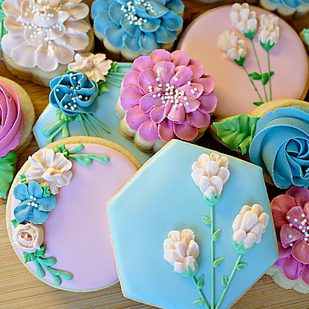 Learn techniques to create beautiful florals with royal icing! This is an intermediate level course and assumes you are already familiar with royal icing basics. If not, check out our Dough/Icing Fundamentals course or Comprehensive Cookie Course before attempting this class.